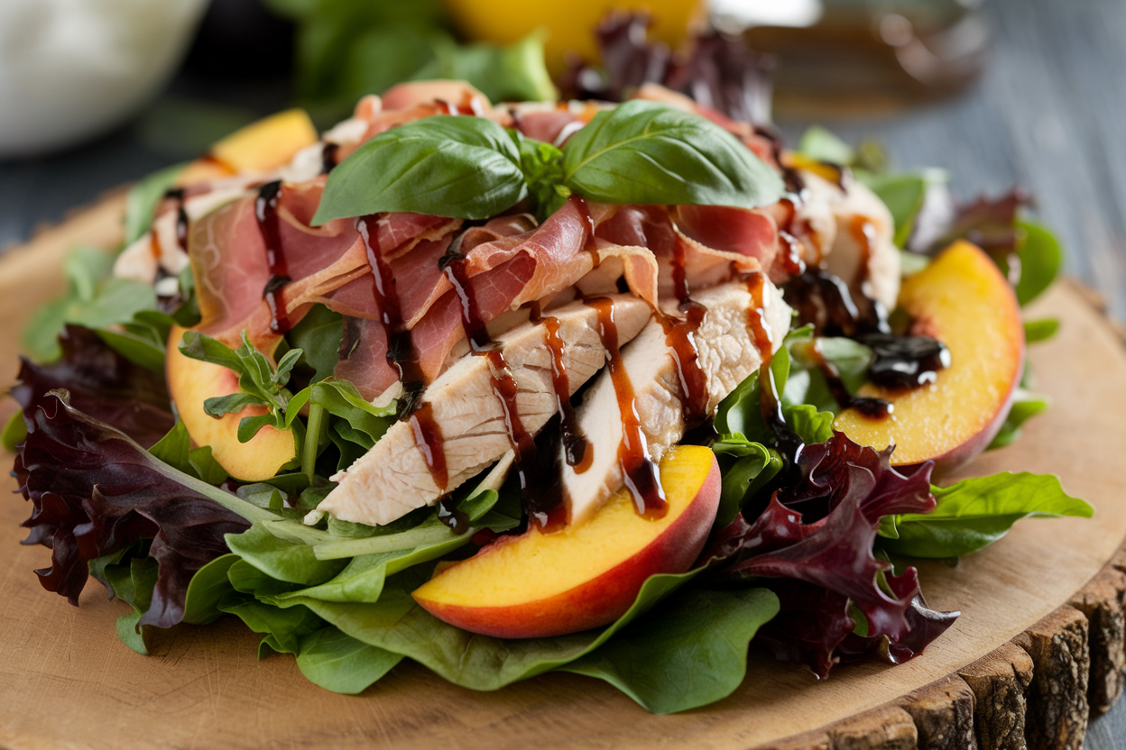It’s the kind of dish that makes you look like a culinary rockstar without hours in the kitchen. The contrast of juicy peaches, fresh basil, savory chicken, and crunchy prosciutto strikes a perfect harmony. Plus, it’s versatile—perfect for backyard BBQs, light lunches, or impressing your date with minimal effort.