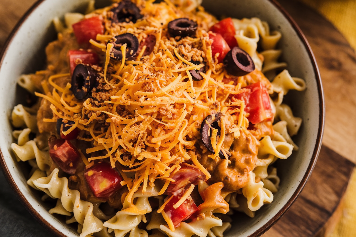 - Loaded taco pasta: Stir in corn kernels, diced bell peppers, or olives for extra crunch and color.