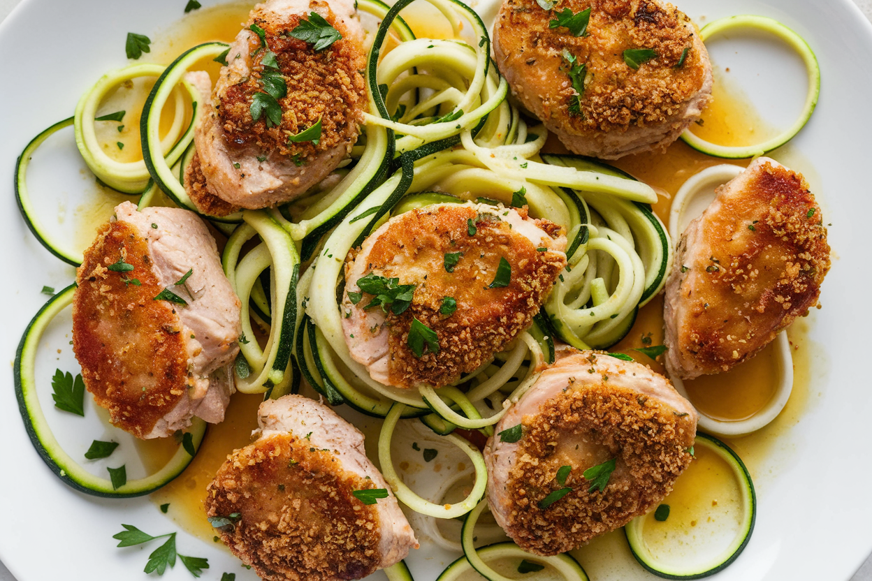 Eat within 2 days for peak freshness. When reheating, toss the chicken in a skillet to retain that buttery sear, and quickly warm the noodles on low heat to avoid sogginess. Freezing isn’t really recommended here—zucchini’s water content makes for a sad, soggy mess post-thaw.