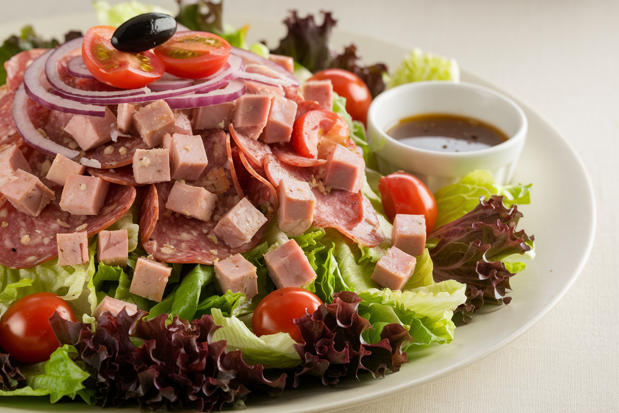 It’s a salad that respects its roots—meaty, cheesy, tangy, crunchy—but gives you the freedom to mix things up however you like. No boring salads allowed here. Drop the sad side dishes, grab a fork, and elevate your salad game with a recipe that screams fancy deli but moves at lightning speed.