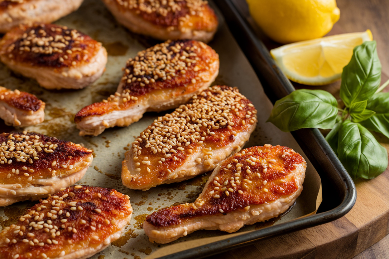 Bake 8–10 minutes, flip, then bake another 6–8 minutes. You want deep golden brown and an internal temp of 165°F (74°C).