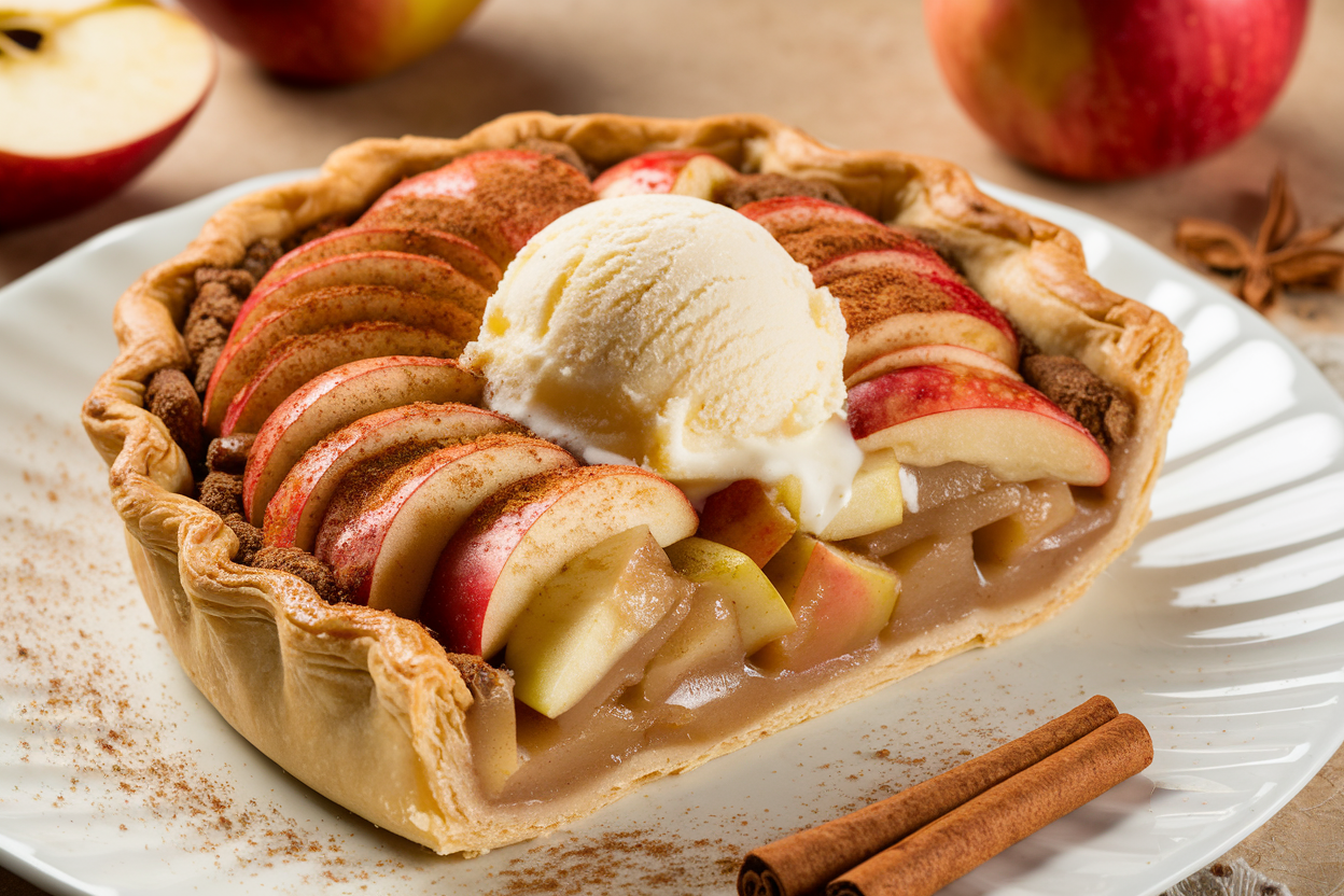 Think caramelized apple chunks paired with crispy cinnamon crumble, drizzles of caramel sauce, and a cool scoop of vanilla ice cream. Each bite offers a surprise—from crunchy to creamy, warm to cold, soft to crisp. Plus, no pie tin drama, no waiting for it to cool, and zero chance of breaking your rolling pin in frustration.